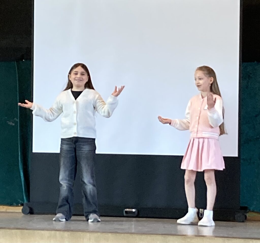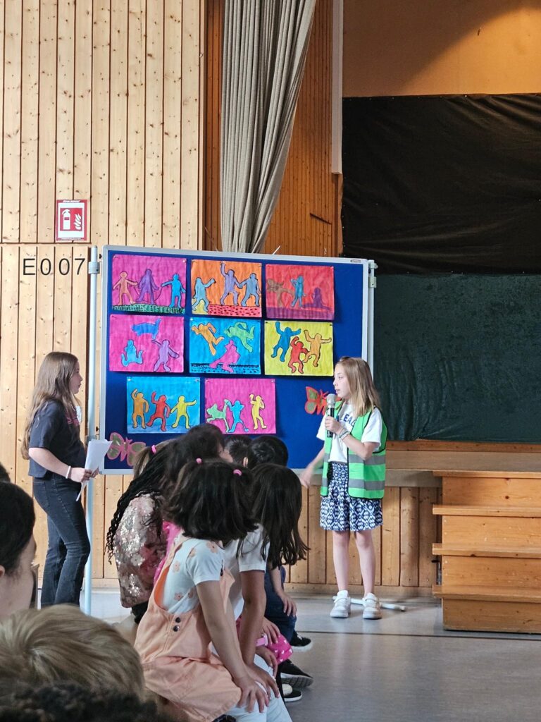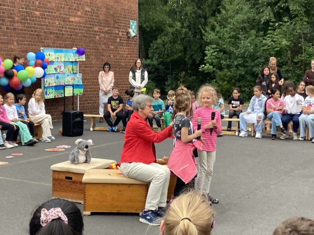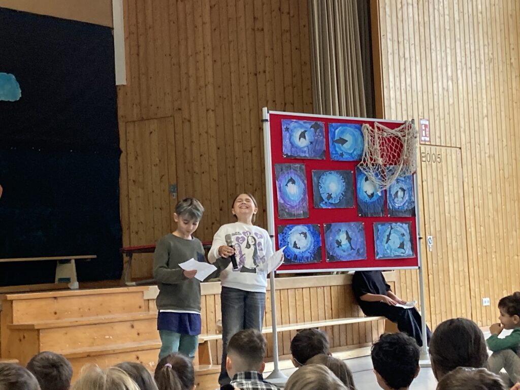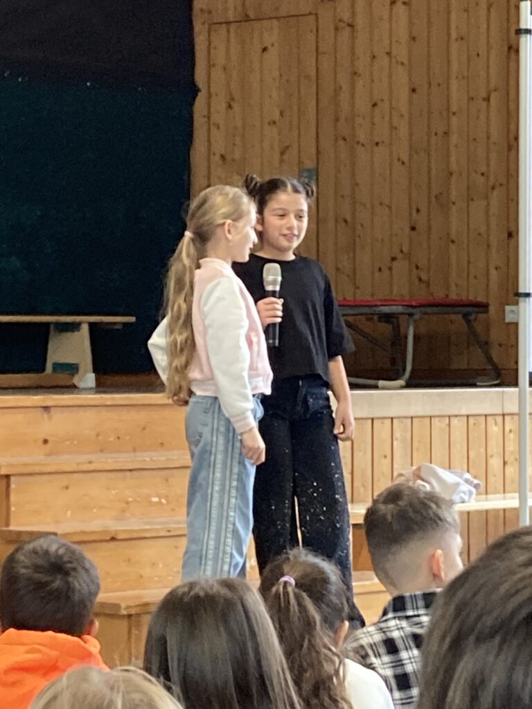 Die Programmpunkte der Feier wurden gekonnt von Moderatorinnen aus Klasse 3 und 4 angesagt.