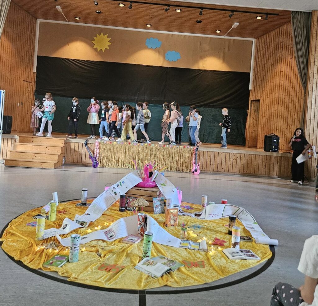 Die kreativ gestalteten Leserollen der Viertklässler bildeten auch den Eyecatcher in der Dekoration unserer Monatsfeier.