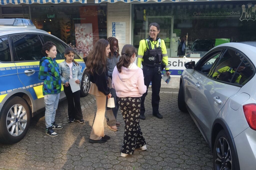 Ein weiteres Thema, das angesprochen wurde, war das sogenannte Eltern-Taxi. Die Kinder erklärten, wie das falsche Parken und die große Anzahl an Autos den Schulweg unsicherer machen können. Wir möchten uns herzlich bei der Polizei für die tolle Unterstützung und die gelungene Aktion bedanken.