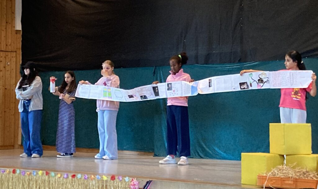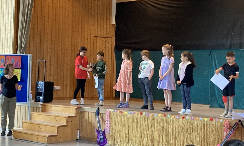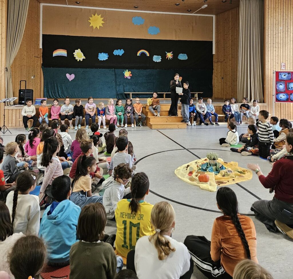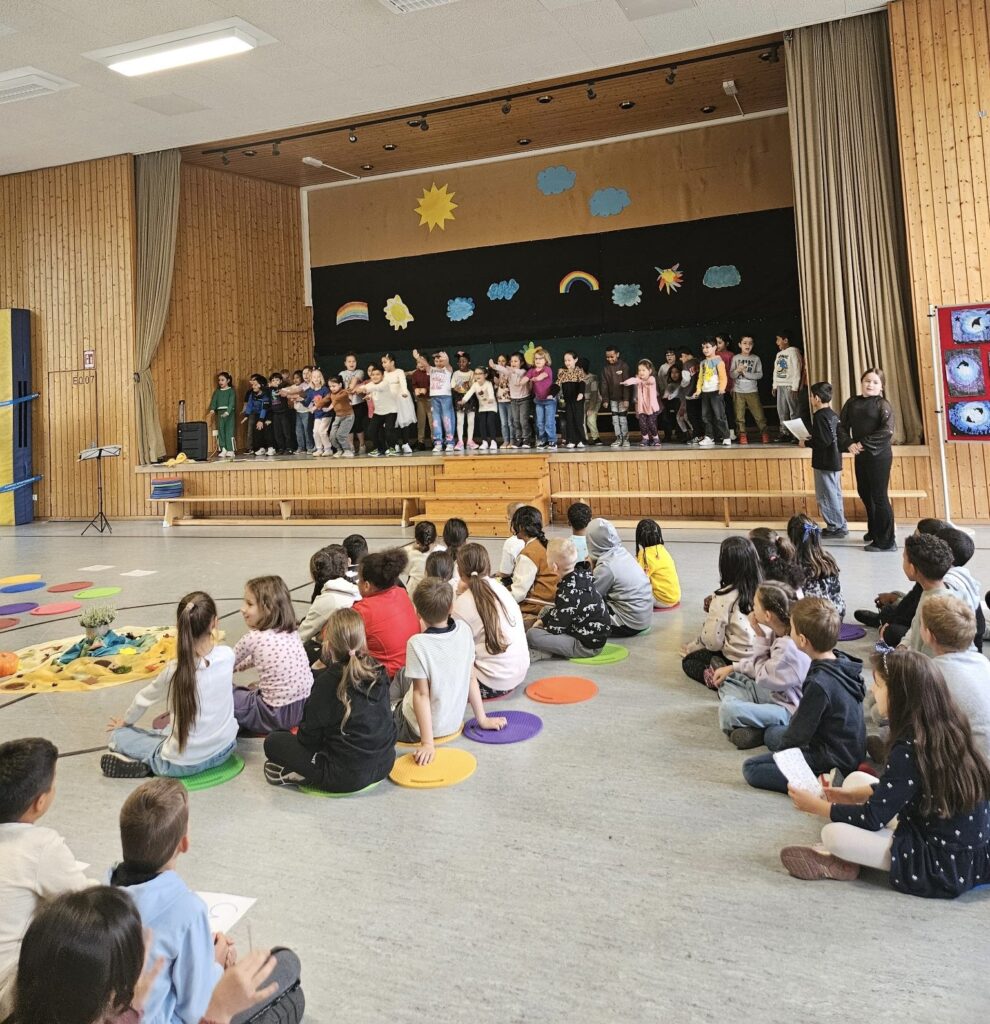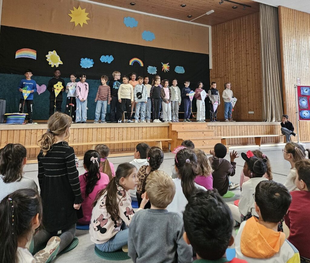 In der ersten Monatsfeier des neuen Schuljahres zeigten die Klassen schöne und interessante Beiträge, die in den letzten Wochen im Unterricht der Fächer Musik, Kunst, Sachunterricht, Deutsch und Englisch entstanden. Durch das Programm führte gekonnt ein Moderatorenteam aus den vierten Klassen.