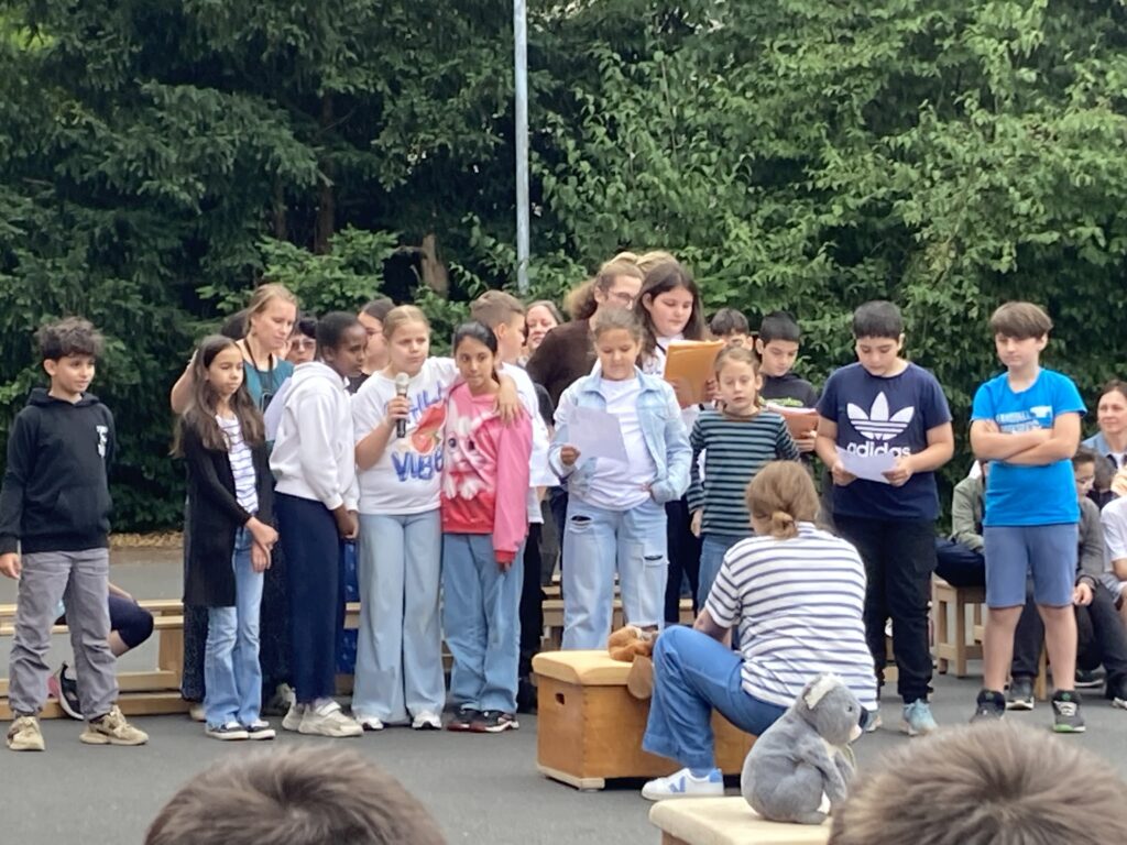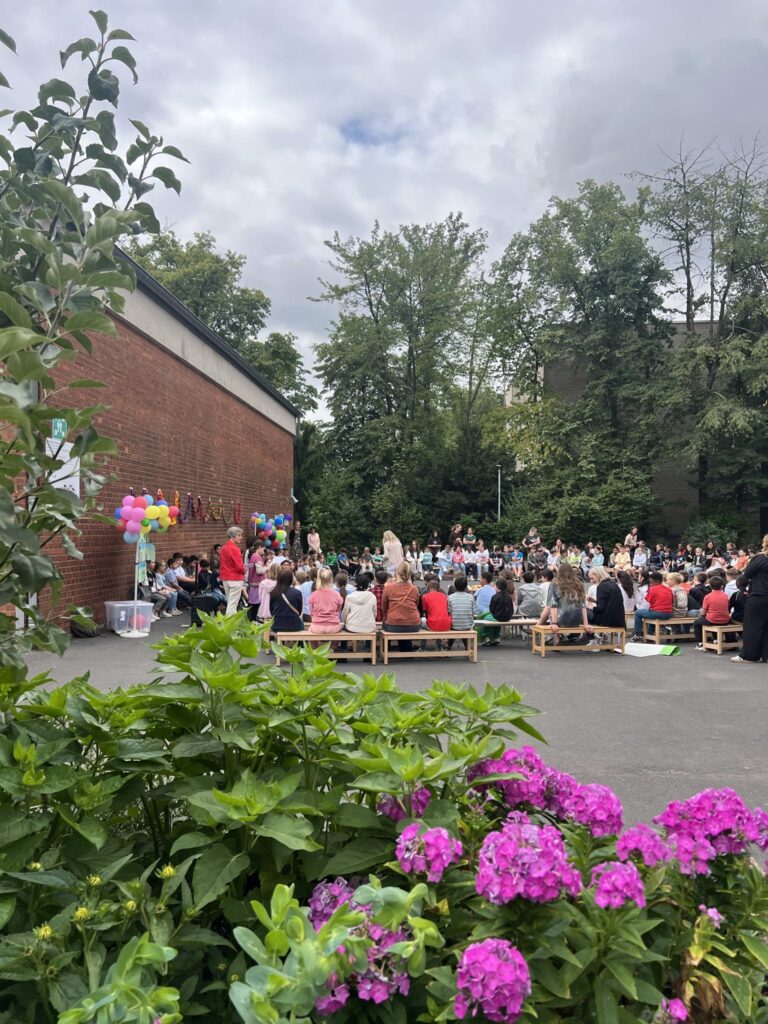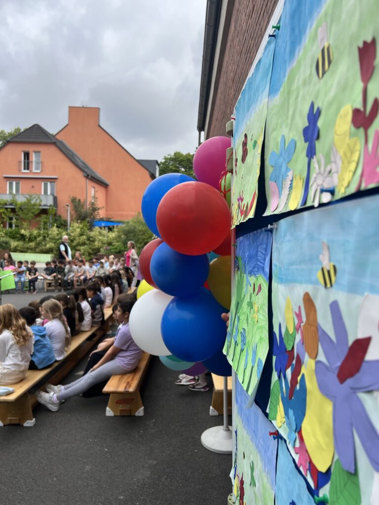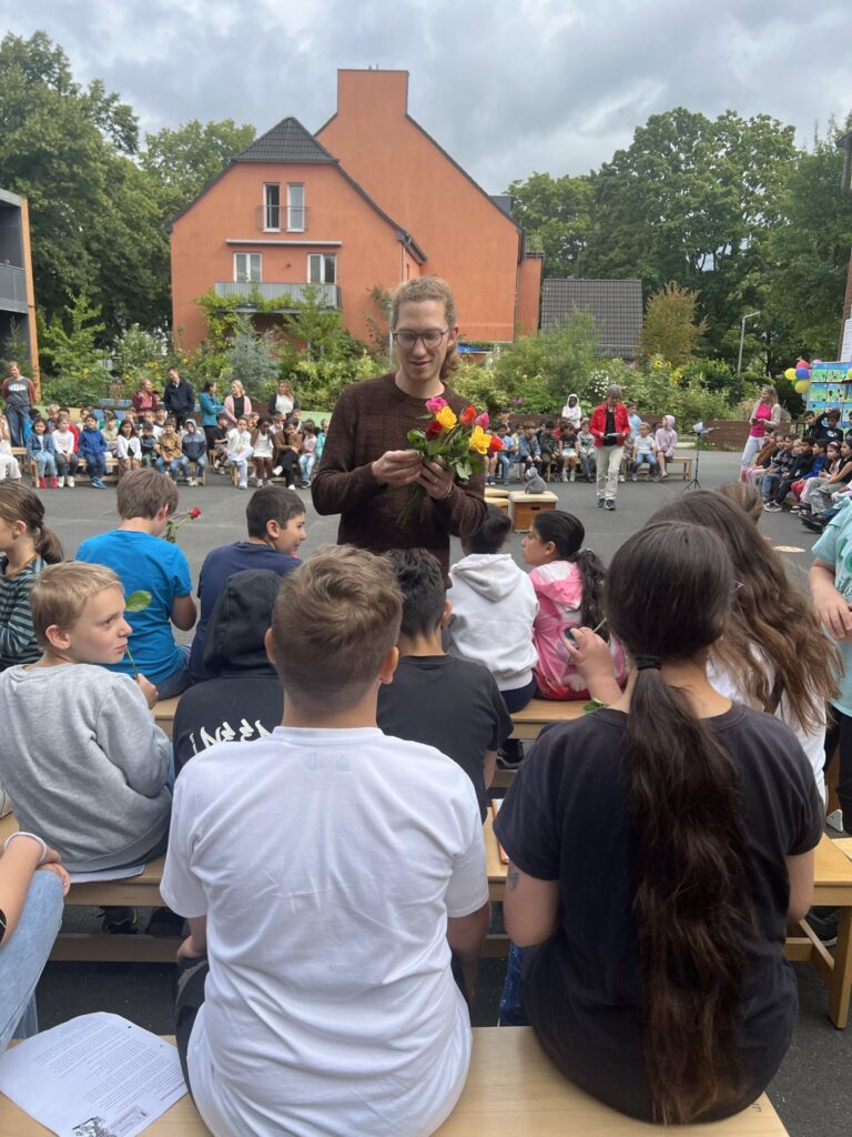 Auf der Monatsfeier, die bei gutem Wetter mit allen Klassen gemeinsam auf dem Schulhof gefeiert werden konnte, wurden die Kinder der vierten Klassen verabschiedet. Wir wünschen euch allen einen guten Start an den neuen Schulen und viel Erfolg für die weitere Schullaufbahn!